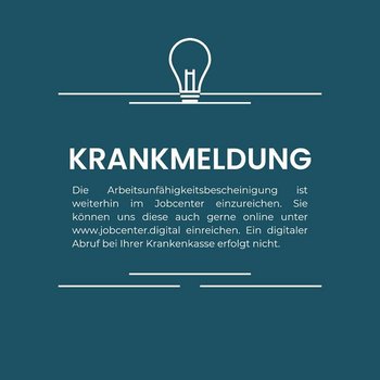Bürgergeldberechtigte können auch auf digitalem Weg ihre AUB einreichen. Über www.jobcenter.digital lassen sich über die sogenannten Veränderungsmitteilungen Arbeitsunfähigkeiten bequem anzeigen und hochladen.