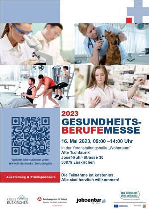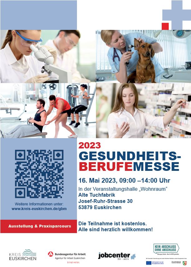 Am Mittwoch, 12. Juni 2024 findet zum siebten Mal im Kreis Euskirchen die Gesundheitsberufemesse statt. Von 9 bis 14 Uhr präsentieren sich rund 30 Unternehmen der Gesundheitswirtschaft aus dem Kreis Euskirchen im „Wohnraum“, dem Gebäude der Alten Tuchfabrik in Euskirchen.